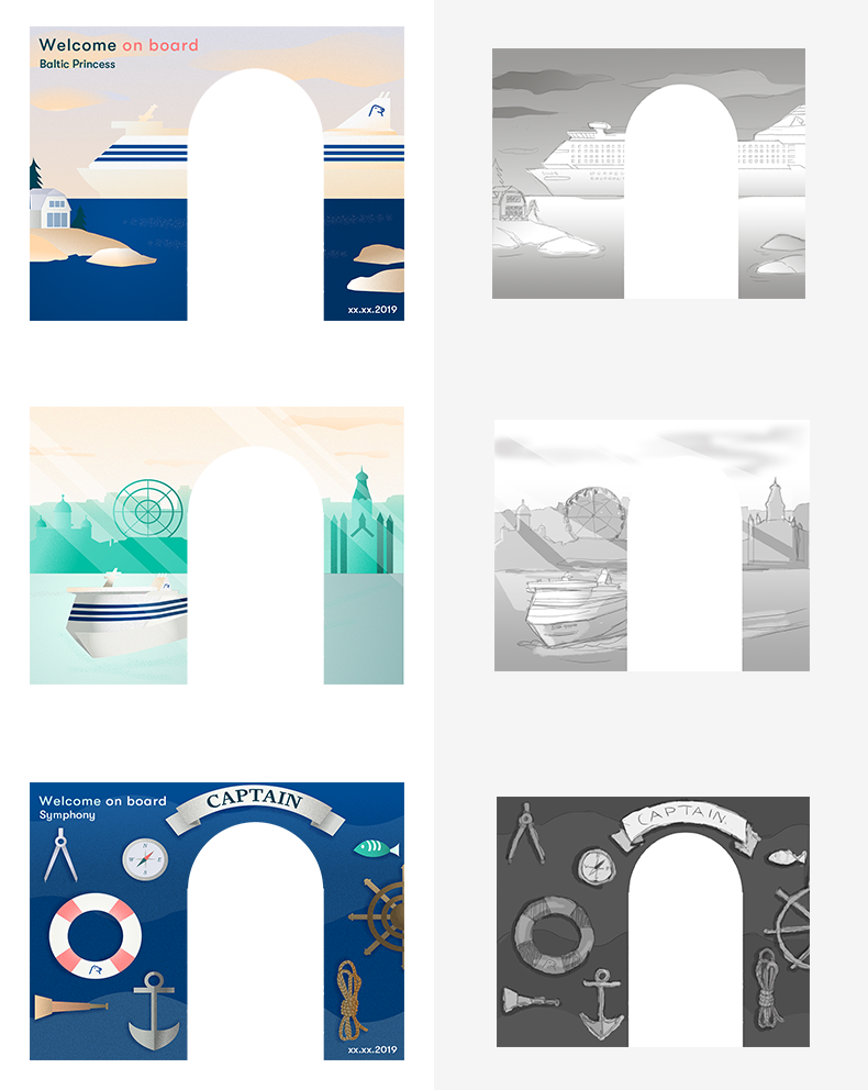 In the end I won over the customers and the photographers with these new illustrated templates that pinch of brand. Here is comment from one of the pthotographer: “We have received some great feedback from the templates. The passengers and almost all the photographers love them.