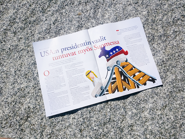 lllustration for UP-Uutispalvelu for article how the result of the USA presidential 2017 vote may affect Finland.