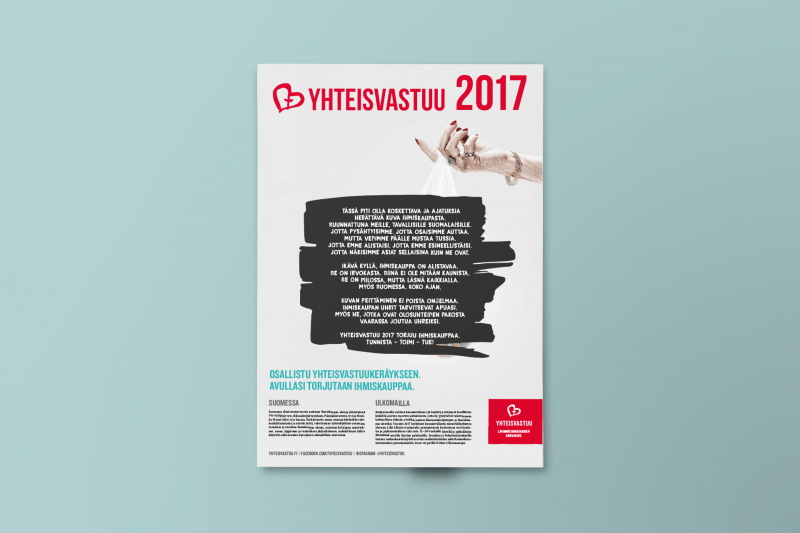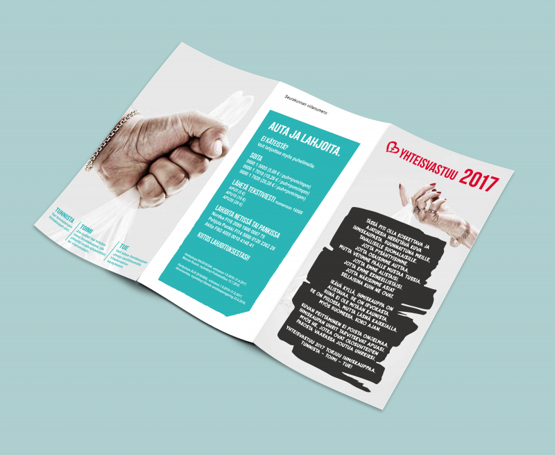 I had the chance to freshen up Yhteisvastuu 2017 campaign’s print materials. The task included designing the campaing magazine, brochures and thank you -cards.